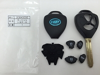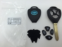 破損したメーカー純正リモコンキーから基盤やボタンを取り出し、キーシェルのキーヘッドに移植します。
